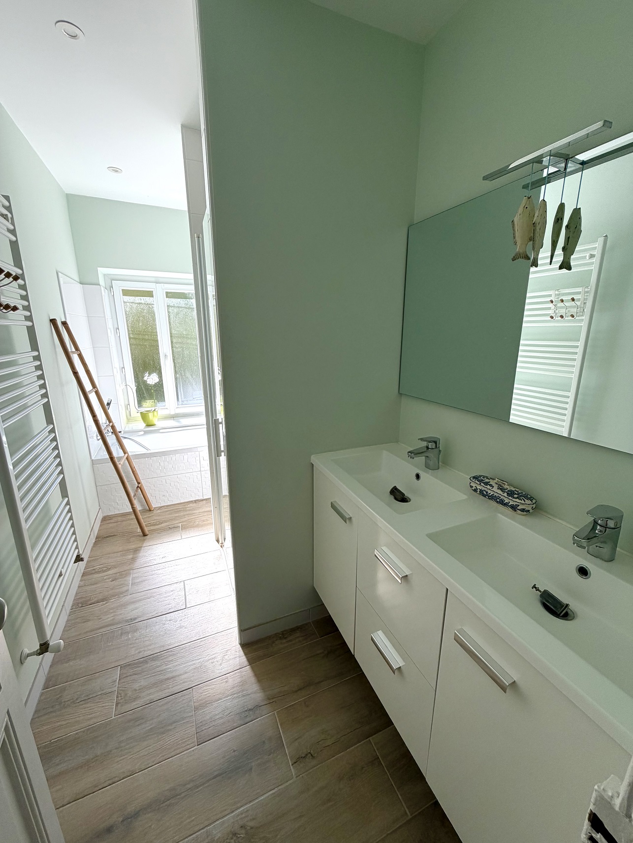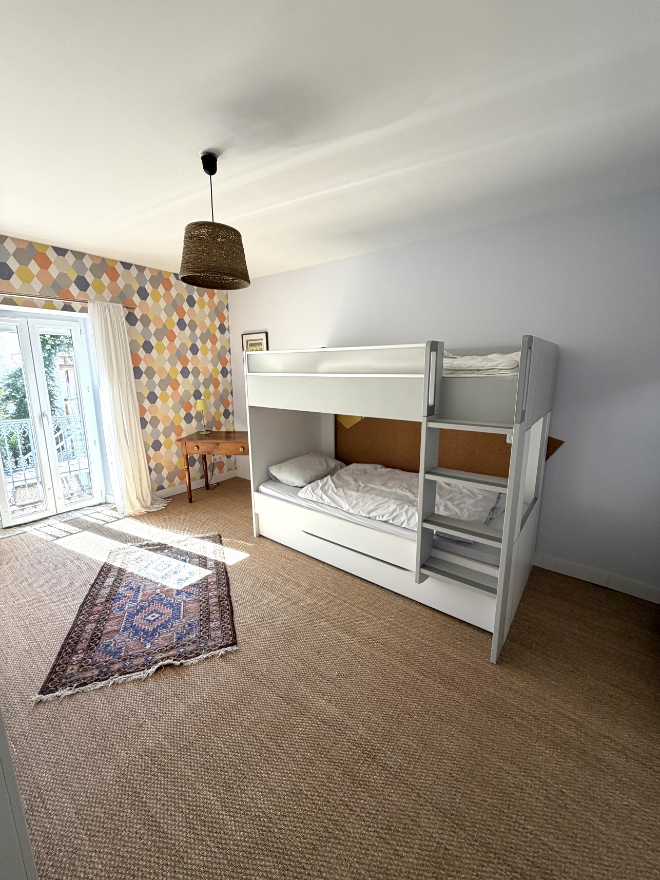 A l’étage, le pallier dessert 3 chambres, un espace bureau/détente, une petite chambre et une salle d’eau.