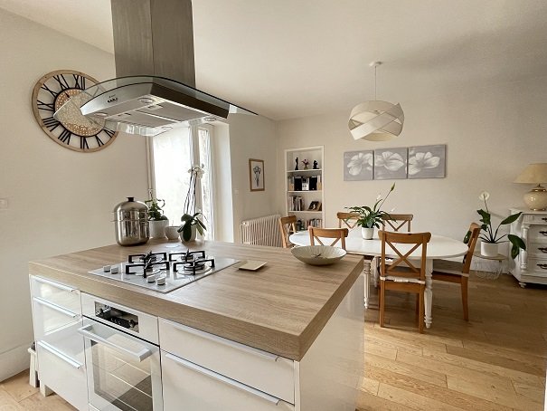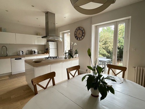 Coup de cœur assuré pour cette maison de ville avec beaucoup de cachet et rénovée avec goût, offrant une entrée, une cuisine équipée ouverte sur salon séjour très lumineux, 4 chambres, un bureau, nombreux rangements, une salle de bains avec baignoire et douche et une seconde salle d’eau, 3 WC indépendants à chaque niveau, paliers et dégagements. Une cave parfaitement aménagée, une terrasse et un très joli jardin clos et arboré complètement.