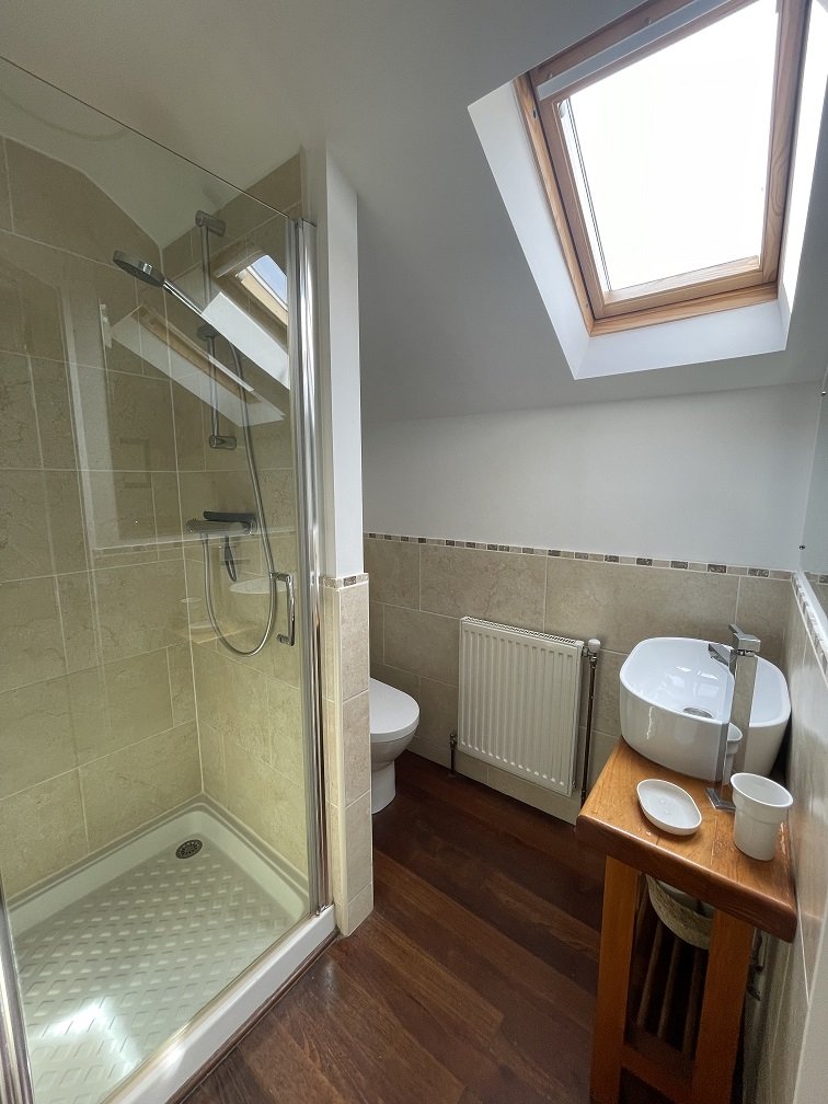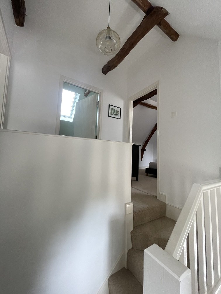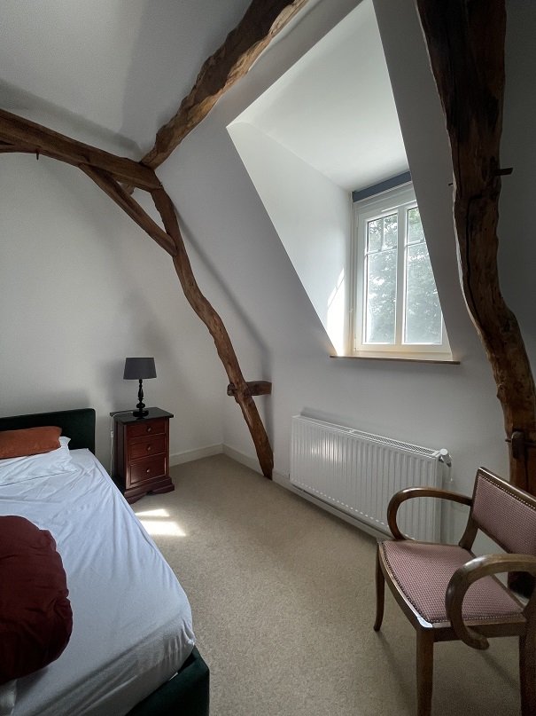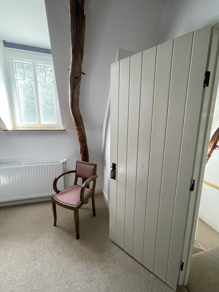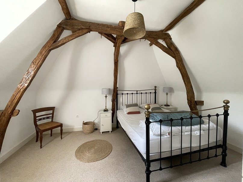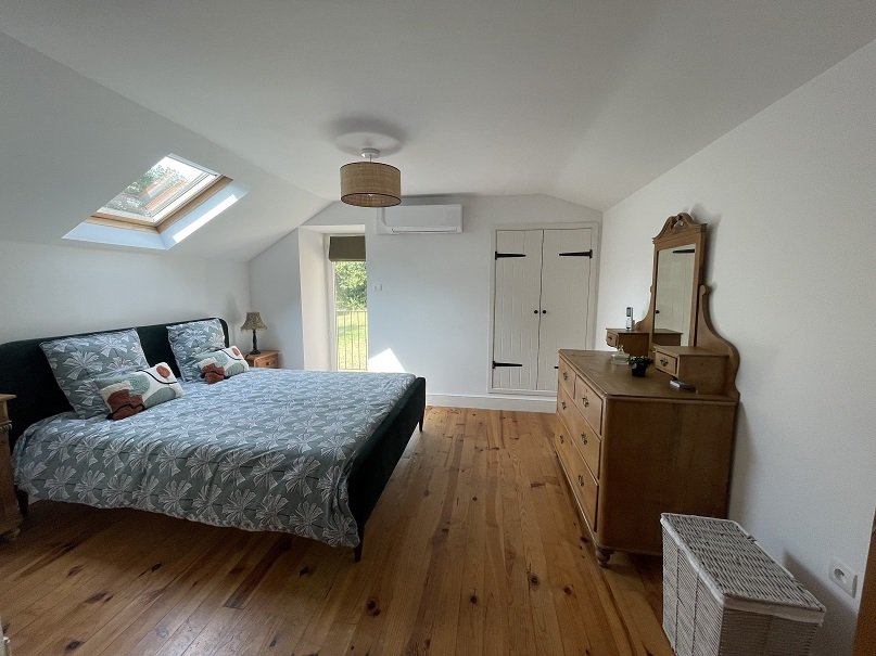 A l’étage, le palier dessert 2 spacieuses chambres et une salle de bain. Les travaux de réfection ont été entrepris il y a deux ans. Pompe à chaleur avec climatisation réversible dans toutes les chambres. Double vitrage partout. Les toitures pour l’ensemble ont été refaites. La maison est raccordée au tout à l’égout.