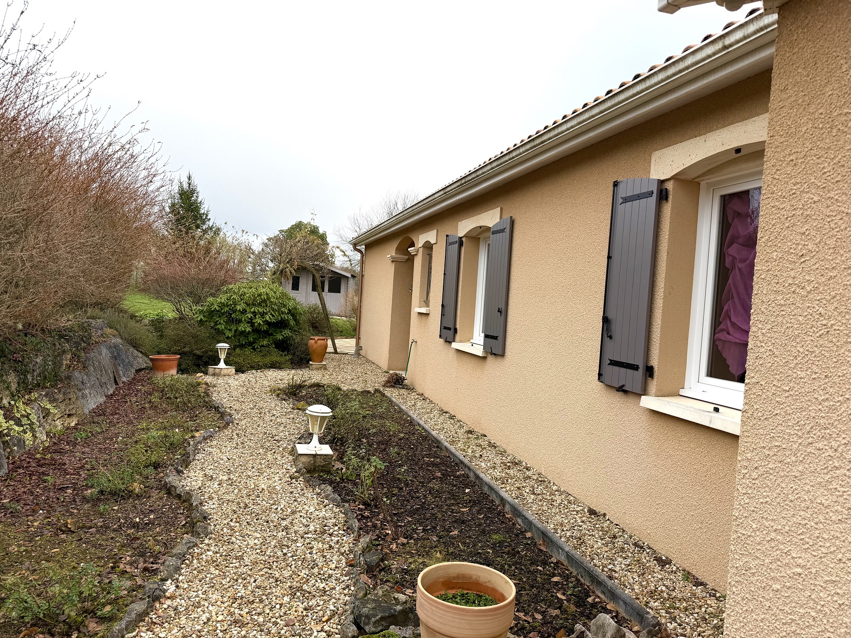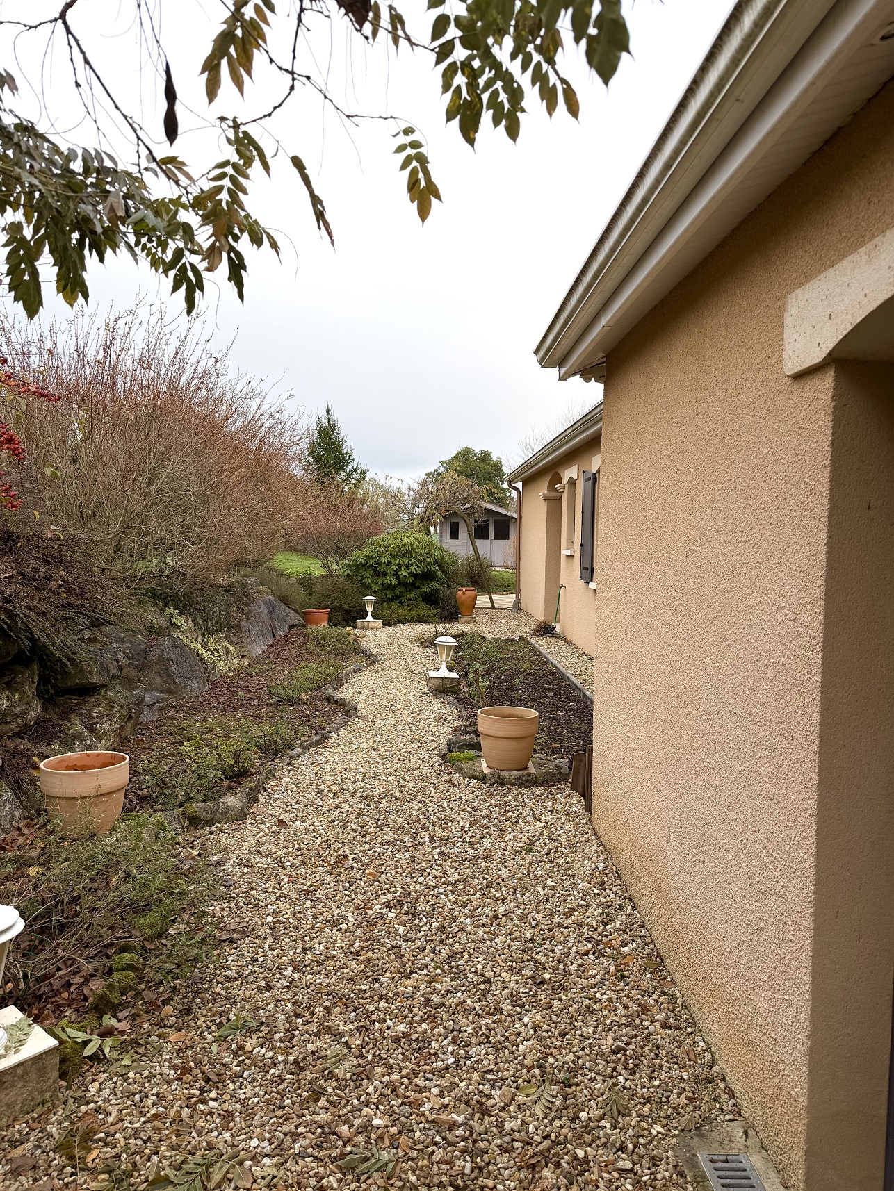 Jardin paysagé et clôturé. Portail motorisé.