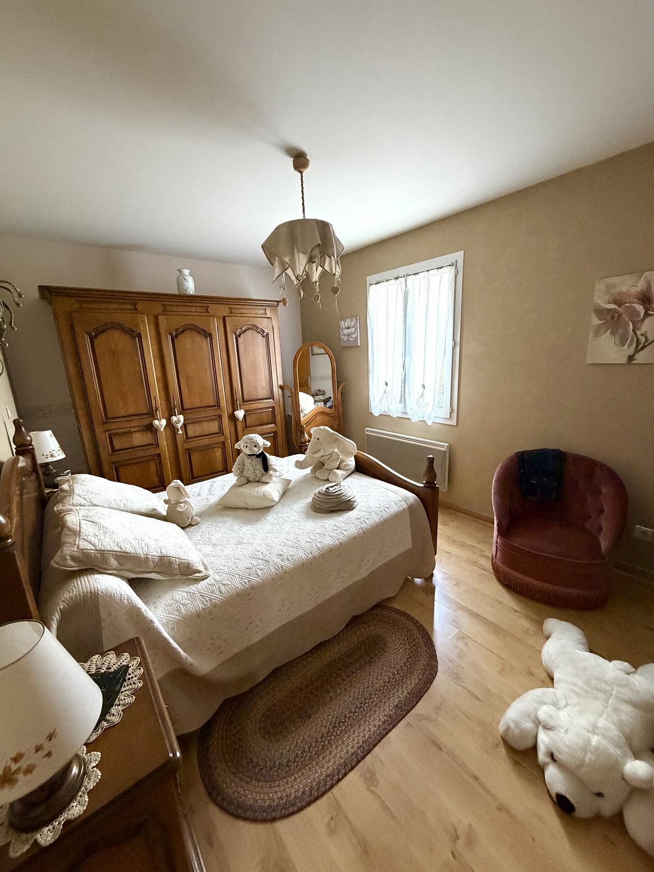 La maison offre une spacieuse entrée avec placards, un séjour de plus de 45 m2, une cuisine équipée ouvrant sur terrasse, 4 chambres, une salle de bains, une salle d’eau et deux WC. Nombreux rangements.
